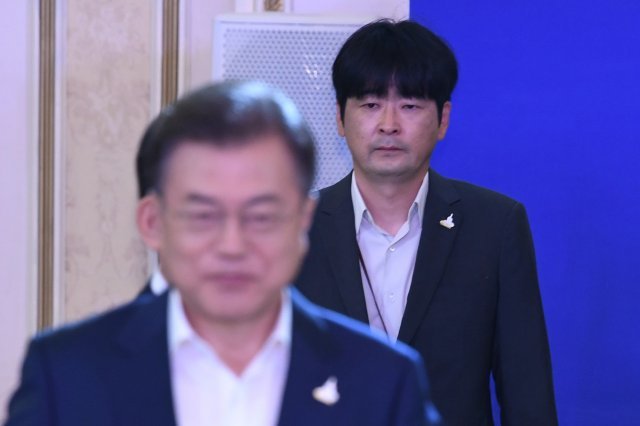 문재인 대통령과 탁현민 청와대 의전비서관. 청와대사진기자단