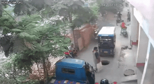 영상을 보면 휴대전화를 손에 든 여성은 릭샤(인력거)를 따라 길을 걷고 있다. 릭샤가 지나가자 가려져 있던 도로의 맨홀이 나타났고, 여성은 통화에 열중한 듯 다른 곳만을 쳐다봤다. 이내 여성은 맨홀로 빨려 들어가듯 사라졌고, 근처에 있던 시민 10여명이 몰려와 그를 구하기 위해 애쓰는 장면이 담겼다.