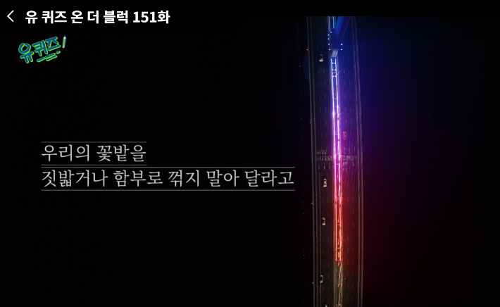 尹 출연 논란' 유퀴즈 "우리 꽃밭을 함부로 짓밟지 말라 tvN '유퀴즈' 제작진, 27일 방송 영상 자막 통해 간접적으로 입장 밝혀 MC 유재석까지 소환 尹 출연한 '유퀴즈' 파장 여전