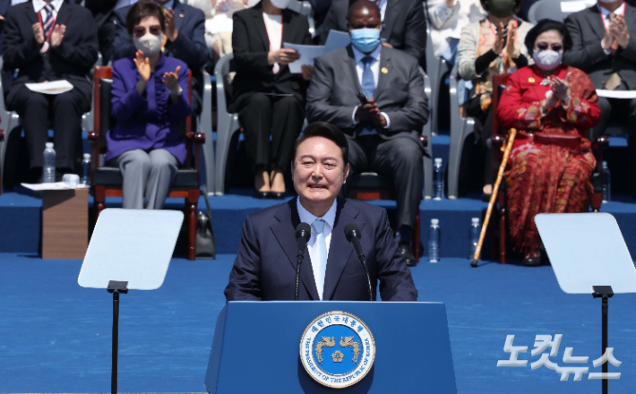 10일 오전 서울 여의도 국회에서 열린 윤석열 제20대 대통령의 취임식에 윤석열 대통령이 취임사를 하고 있다. 윤창원 기자