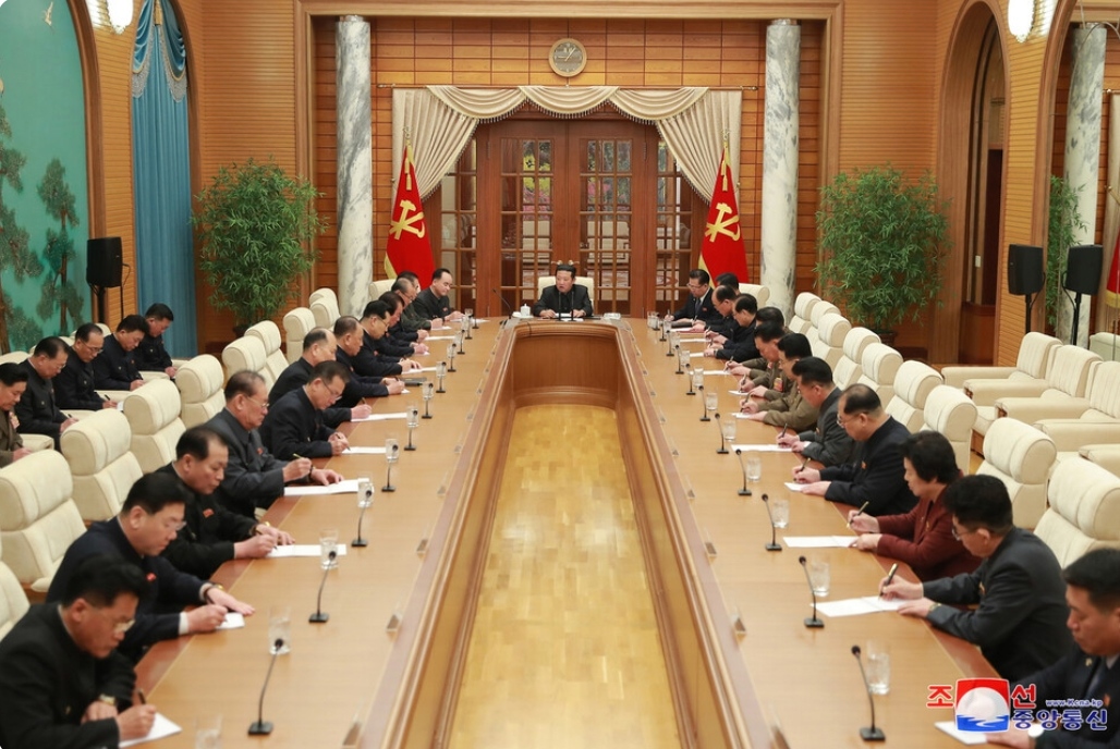 김정은 조선노동당 총비서 겸 국무위원장 주재로 지난 1월20일 열린 노동당 중앙위 8기6차 정치국회의 모습. 조선중앙통신 연합뉴스