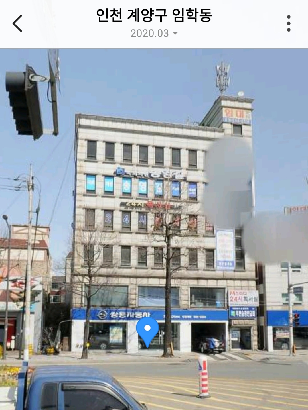 아래는 2020년 3월 촬영된 사진이다. 역시 나무가 정상적인 모양새다. 더불어민주당 송영길 사무실인가?