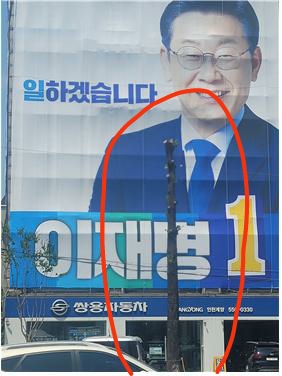 지난 16일 윤형선 인천 계양을 후보 선거대책위원회에 따르면 계양주민들이 이재명 후보 선거사무실 외벽에 걸린 대형현수막을 잘 보이게 하기 위해 멀쩡한 나무가지를 제거한 것 아니냐는 지적이 일고있다고 전했다.