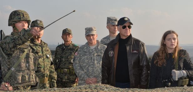 2013년 12월 7일 조 바이든 미 부통령이 손녀 피너건양과 함께 판문점 인근 올렛초소(GP)를 방문해 브리핑을 받고 있다. 왼쪽은 커티스 스카파로티 한미연합사령관. /조선일보 DB