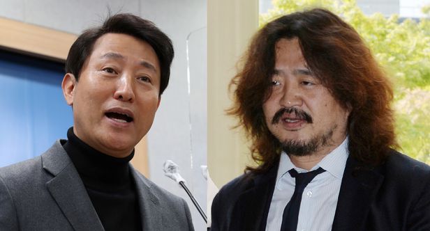 국민의힘 오세훈 서울시장 후보(왼쪽)와 방송인 김어준씨. /뉴스1