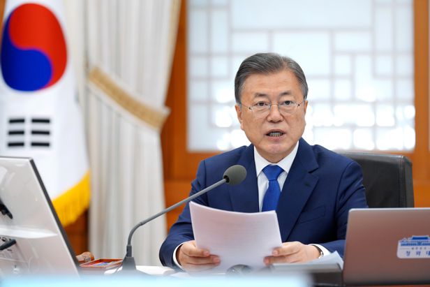 문재인 대통령이 지난 3일 청와대 본관에서 열린 임기 마지막 국무회의에서 발언하고 있다. (청와대 제공) 2022.5.3/뉴스1 ⓒ News1 오대일 기자