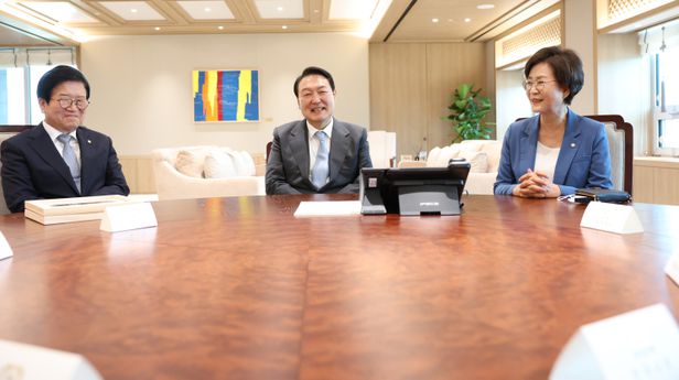 윤 대통령은 이날 서울 용산 대통령실 청사 5층 집무실에서 박병석 국회의장과 김상희·정진석 부의장, 이춘석 국회 사무총장 등을 만났다. 대통령실에서는 김대기 비서실장, 이진복 정무수석, 최영범 홍보수석이 배석했다.