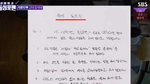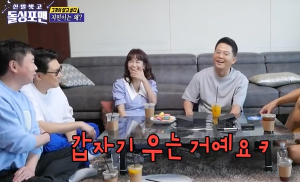 특히 주식이 떨어진 탁재훈에게 김준호는 "주식말고 사랑에 빠져라"며 촬영 동의서를 꺼냈다. 위생지적과 외모비판하지 말라는 것. 이어 주식과 코인 등 돈 관련 얘기하지 말라고 하자 이상민은 "(지민이) 모르냐, 너 투자한 회사 상장폐지된 거 모르나"며 기습질문했고, 김준호는 "아예 몰라 하지마. 미쳤나봐"라며 비밀이 들킨 듯 당황했다.