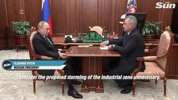 지난달 21일 세르게이 쇼이구 국방부 장관을 독려하기 위해 마련된 자리에서도 경직된 표정으로 테이블 모서리를 붙들고 있었다.