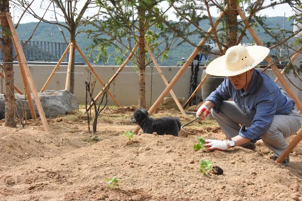 문재인 전 대통령이 경남 양산 평산마을의 사저내 텃밭에서 밭일을 하고 있는 모습을 20일 문 전 대통령 비서실이 공개했다. /페이스북