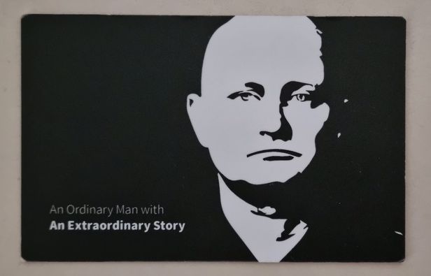 배우 울리히 라르센의 명함. "특별한 이야기를 가진 평범한 사람"이라고 적혀 있다.