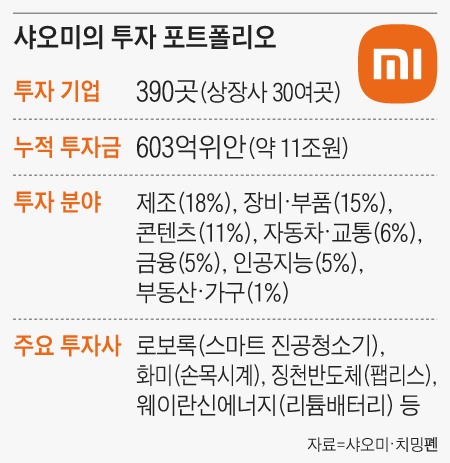 2010년 창업한 샤오미는 ‘IT·가전 시장의 무인양품(일본 잡화 브랜드)’을 표방한 기업이다. 스마트폰·TV부터 공기청정기, 스쿠터, 전기차, 카드 단말기에 이르기까지 수백 종의 제품을 쏟아내며 ‘샤오미 생태계’를 구축해왔다. 핵심 사업인 스마트폰은 2020년부터 세계 3위를 지키고 있고, 샤오미 전용 사물인터넷 플랫폼에 등록된 가전도 4억 7000만대에 달한다. 또 제품을 직접 생산하지 않고, 유망 제조사를 발굴해 투자한 다음 위탁 생산하는 방식도 주목을 받았다. 2~3년 전부터는 투자사가 상장하면 일부 지분을 매각해 투자금을 다시 조달하는 선순환 구조도 만들었다. 작년 말까지 샤오미가 투자한 회사는 390곳, 누적 투자금은 603억위안(약 11조원)에 달한다. 불과 5개월 전만 해도 샤오미 창업자 레이쥔(雷軍)은 “애플, 삼성을 꺾고 세계 1위로 올라서겠다”며 기세등등했다.