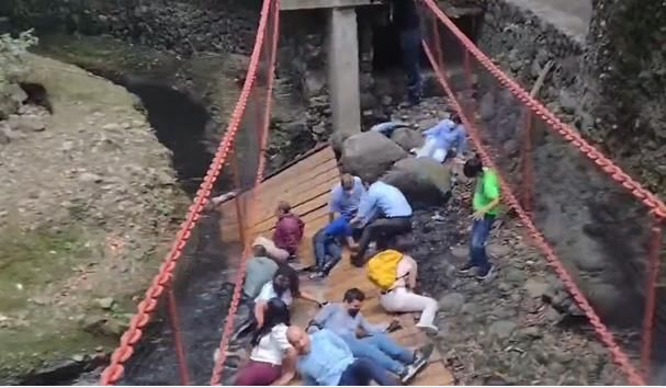 7일 개통식 도중 무너진 멕시코 쿠에르나바카시의 출렁다리. /밀레니오TV