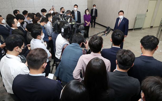 윤 대통령은 북한의 도발로 ‘조기 출근’ 한 날 등을 제외하곤 대부분 용산 청사 로비에서 기자들과 즉석 질의응답을 했다. 이날 도어스테핑이 취임 후 12번째였다. 과거 청와대 담당 기자가 대통령과 대면하는 게 연례행사에 가까웠다면, 대통령실 출입 기자는 주 3회꼴로 대통령을 만나 직접 질문을 던진 셈이다. ‘검찰 편중 인사’와 같은 민감한 질문에도 자신의 생각을 가감 없이 전달했다.
