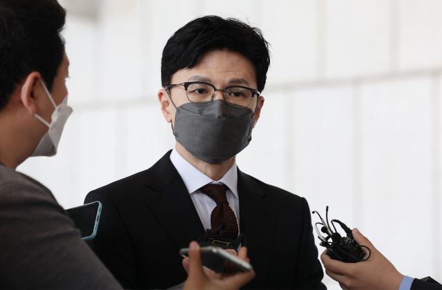 한동훈 법무부 장관이 16일 오전 서울 중구 프레스센터에서 열린 제40회 교정대상 시상식에 참석하기 전 취재진과 만나 검찰 조직 개편 및 보복 수사 등에 대한 입장을 말하고 있다. 연합뉴스