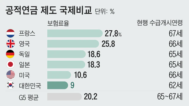 5년 늦게 받았더니 건보료 폭탄 국민연금 177만원 덫 5년 연기 36% 더 수령? 노령연금 국민연금 불리기 꿀팁 사실은 수급개시 연령 보험료율 낮아 선진국 비해 공적연금 재정 안정성 취약