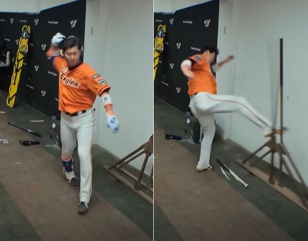 당시 하주석은 더그아웃으로 들어와 팔꿈치 보호장비와 헬멧을 집어 던졌다. 코치들과 동료 선수들이 보고 있었지만 아랑곳하지 않았다. 이어 뒤쪽 공간에 들어간 그는 욕설을 내뱉으며 방망이로 벽을 힘껏 친다. 방망이는 그대로 두 동강 나 버렸고, 하주석은 그래도 화가 풀리지 않는지 구장 내 집기를 발로 차기까지 했다.
