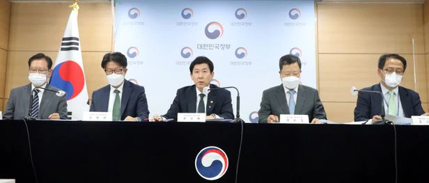최상대(가운데) 기획재정부 2차관이 20일 서울 종로구 세종대로 정부서울청사 브리핑룸에서 2021년도 공공기관 경영실적 평가결과 및 후속조치 관련 관련 브리핑을 하고 있다. /뉴스1