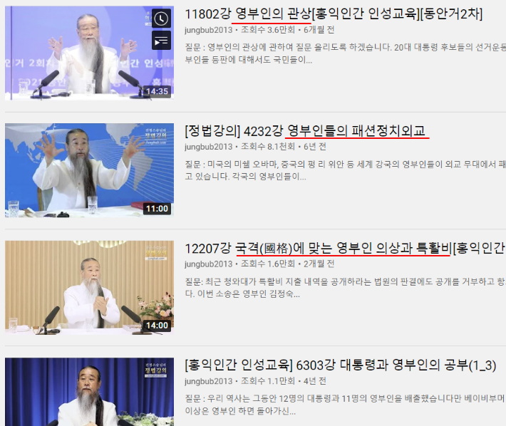 천공은 이전에도 '영부인의 관상', '영부인들의 패션정치외교', '국격에 맞는 영부인 의상과 특활비', '영부인 공부' 등 대통령 배우자와 관련된 강의 영상을 여러차례 올렸다.