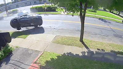이는 한 주택의 CCTV에 고스란히 담겼다. 범죄자들의 차량은 모퉁이를 돌다가 갑자기 굉음을 내며 전복된다. 차량은 두 번을 구르며 미끄러진 뒤 한 집 앞 가로수 앞에서 멈춰 선다. 이에 집주인은 굉음에 놀란 듯 집 밖으로 뛰쳐나온다. 곧 해당 차량을 쫓던 경찰차 여러 대가 도착하고 집주인은 서둘러 집 안으로 피신한다. 그때 범죄자 2명이 깨진 앞유리를 뚫고 나와 탈출을 시도한다. 그러나 경찰들이 빠르게 쫓아가 이들은 모두 검거된다.