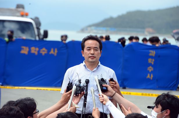 지난달 29일 오후 문용은 광주 남부경찰서 형사과장이 전남 완도군 신지면 송곡선착장에서 브리핑을 하고 있다. 경찰은 "실종됐다 발견된 조유나양(10) 일가족의 아우디 차량을 이날 인양한 뒤 내부에서 사체 3구를 발견했다"고 설명했다. /뉴스1