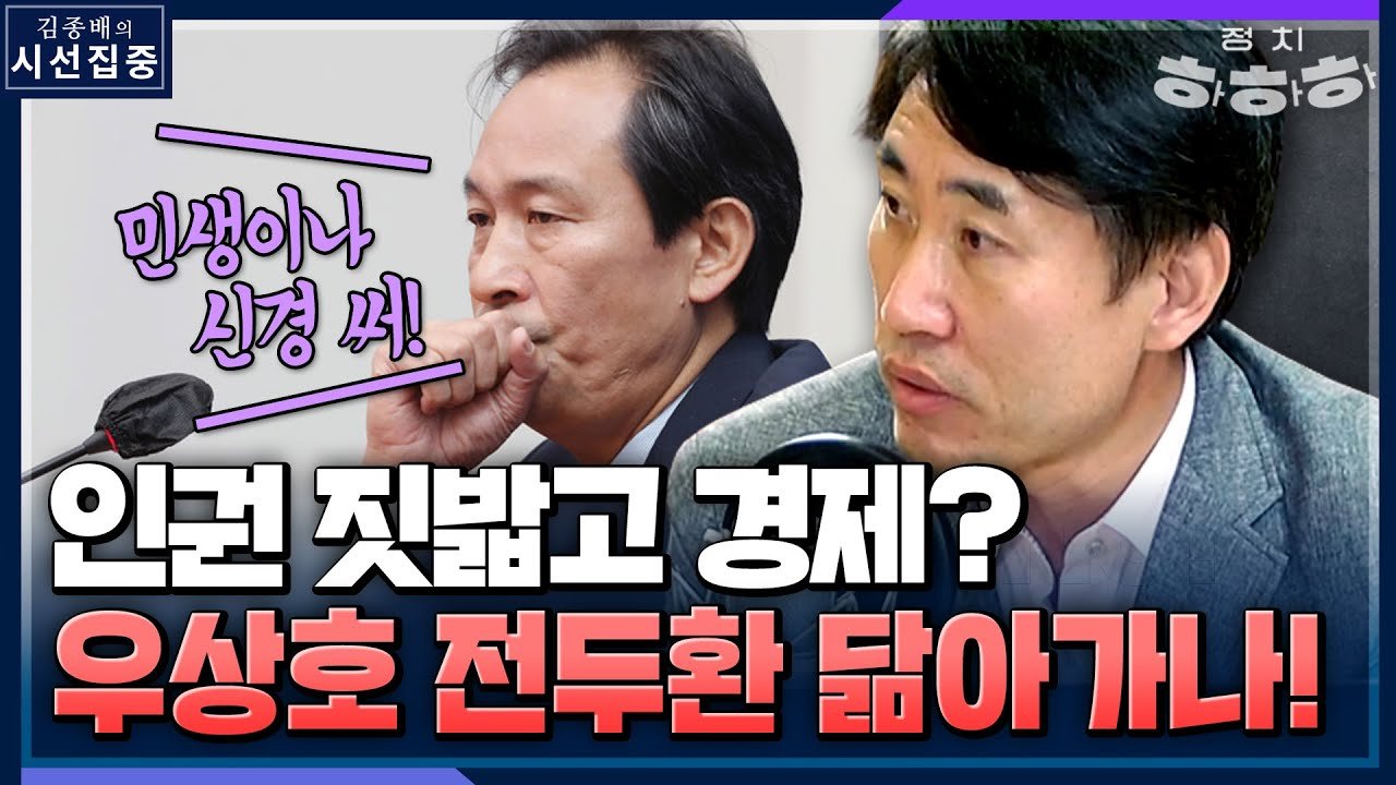 ◎ 하태경 > 그러니까 인권 짓밟는 경제가 전두환의 국정철학이에요. 인권은 무시하고 먹고사는 문제만 챙기면 된다, 그게 전두환 국정철학인데 우상호 이분은 전두환과 싸웠던 분인데 자기가 싸웠던 분 닮아가는 것 같습니다.