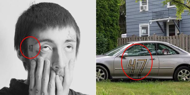 미국 독립기념일 퍼레이드 총기난사범 로버트 크리모 3세(왼쪽)이 얼굴에 47문신을 하고, 차량에 47을 도장했다./온라인커뮤니티