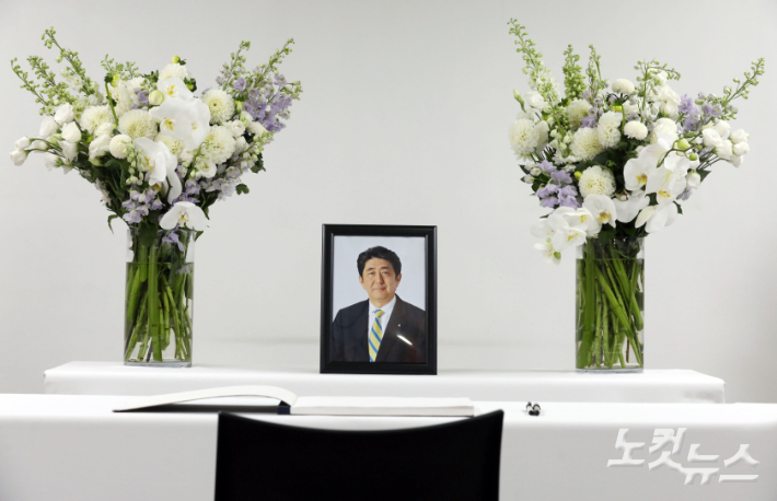 아베 신조 전 일본 총리 분향소가 11일 오전 서울 종로구 주한일본대사관 공보문화원에 마련돼 있다. 황진환 기자