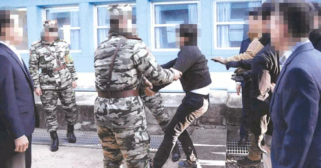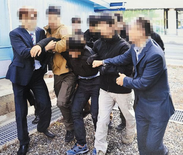 귀순 어민 2명은 포승줄에 묶이고 두 눈이 안대에 가려진 채 2019년 11월 7일 오후 3시 판문점에 도착했다. 검은색 옷차림의 어민은 호송 요원들이 안대를 벗기자 두 손으로 얼굴을 감싸쥐며 괴로워했다. 눈앞에 군사분계선(MDL)과 북한군을 발견한 것이다. 풀썩 주저앉자 사복 차림의 경찰특공대원들이 일으켜 세웠다. 이 어민은 비명을 지르며 자해했다. 모자이크 처리된 사진 중 한 장은 벽에 머리를 찧은 어민이 선혈로 뒤덮인 얼굴로 맨바닥에서 발버둥치는 모습이라고 한다. 정부 관계자는 “북한에서 고통스럽게 처형될 것이라는 공포감에 극단적 선택을 한 것 같다”고 했다.