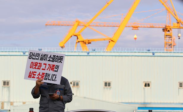 딸(5)과 함께 참석한 김모(38)씨는 “남편과 동료 직원들은 수년간 조선업 불황 고통을 버텨왔다”며 “자신들의 처우 개선을 이유로 회사 전 직원과 그 가족, 지역사회까지 벼랑으로 내모는 행동을 도저히 이해할 수 없다”고 말했다.