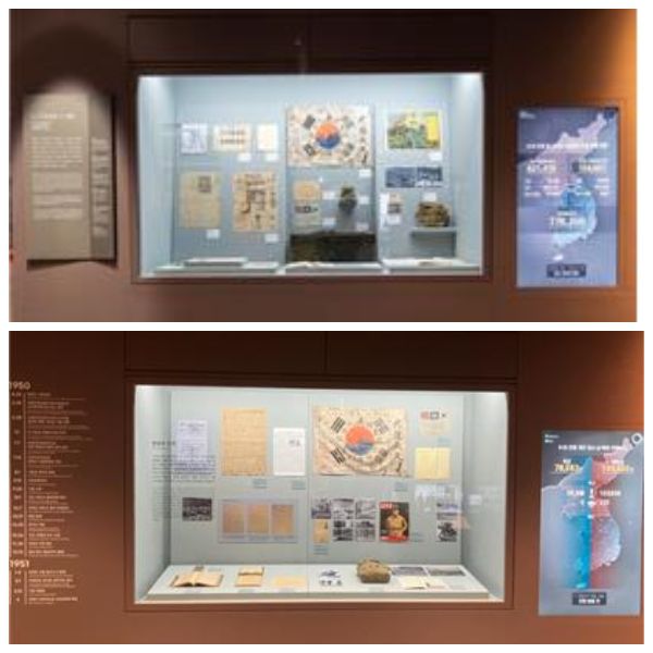 대한민국역사박물관 상설전시실 역사관 6.25 전쟁 코너의 개편 전(위)과 최근 개편 뒤의 모습. /대한민국역사박물관