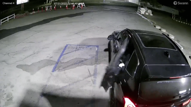 바깥 주차장에는 강도의 일행이 탄 검은색 SUV가 대기 중이었다. 일행 중 한 명은 가게로 먼저 들어간 동료를 지원하려 총을 들고 차에서 내리는 중이었지만, 총성이 들리고 가게 안에서 동료가 뛰쳐나오자 황급히 차 안으로 몸을 숨기는 모습도 포착됐다.