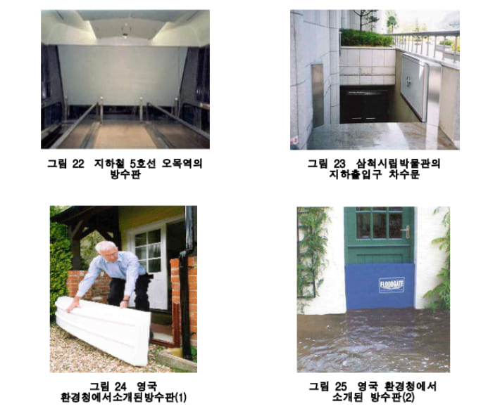 자연재해대책법 관련 '지하 공간 침수방지를 위한 수방기준'에 따르면 지하 공간의 경우 방지턱 설계 외에 방수판이나 모래주머니를 선택적으로 설치하도록 하고 있는데, 임시적 조치해 불과한 모래주머니와 별개로 방수판을 의무적으로 설치하도록 해야 한다는 지적이다.