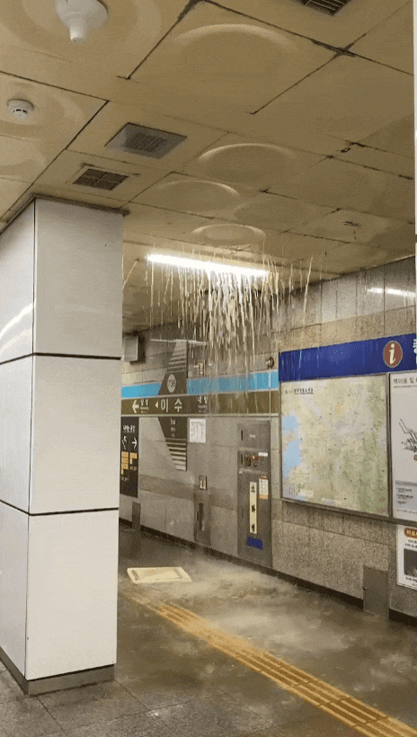 물벼락 맞은 서울 지하철 저지대 상습침수 해결 안되나[영상] 9호선 동작역이 폭우로 침수돼 폐쇄 천정 무너진 7호선 이수역 승강장 특별관리역사 집중관리 신월 빗물저류배수시설 강남 없어