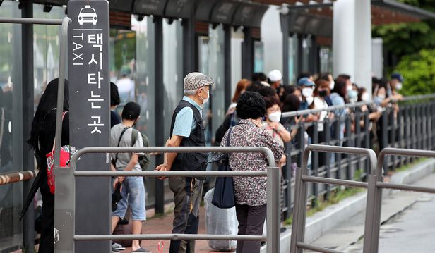 지난달 21일 서울 서초구 고속버스터미널 택시승강장에서 시민들이 택시를 기다리고 있다. /뉴스1