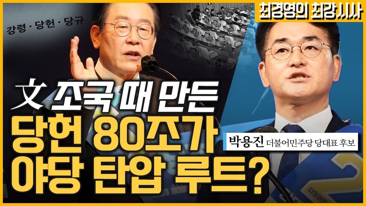 박용진 이재명 문재인 조국 야당 침탈 루트 뚫었나? 위험천만 최경영의 최강시사 전당대회 끝났다 착시 현상 당헌 80조 개정하는 순간 위험천만한 기폭제 이재명 당헌 개정 논의 그냥 방치