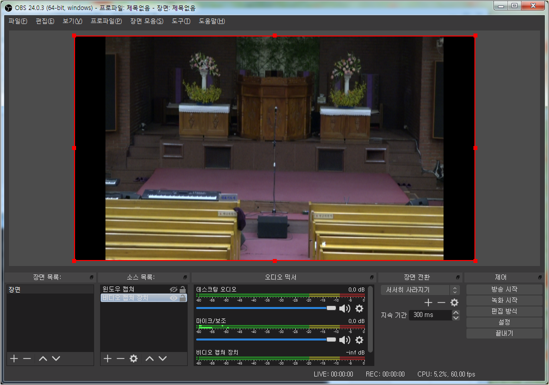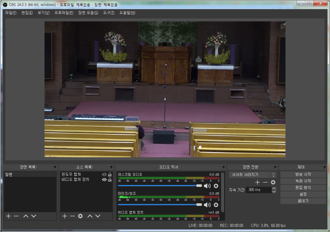 교회에서 유튜브 실시간 스트리밍하게 됐습니다.