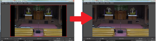 그랬더니, 실재 송출되는 화면에 검은 여백이 생겼습니다.
