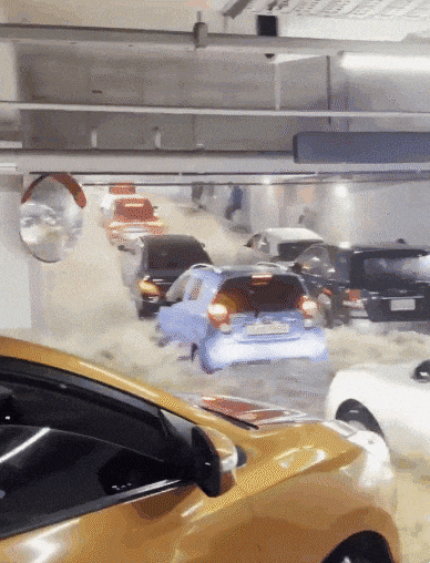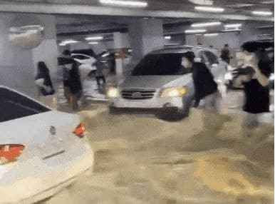 급류가 車 사이로 소용돌이 쳤다… 폭우때 지하주차장 위험한 이유
