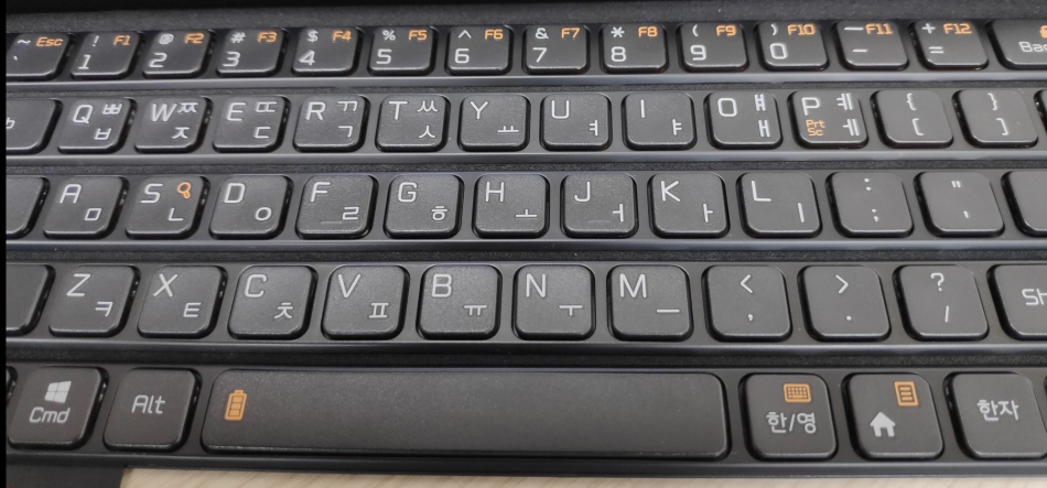 타자 소리는 거의 들리지 않는다고 하는 것이 좋겠다. 아마도 멤브레인(?) 방식인 것 같다. 고무팁 들어있는 거 맞나??? ("펜타그래프" 방식이란다... 이게 뭘까?) 그리고, 키가 시저키라던지, 청축, 갈축이라면 시끄러워서 죽었겠지... 이건 그냥 키감은 보통이다. 스르르 치면 된다.