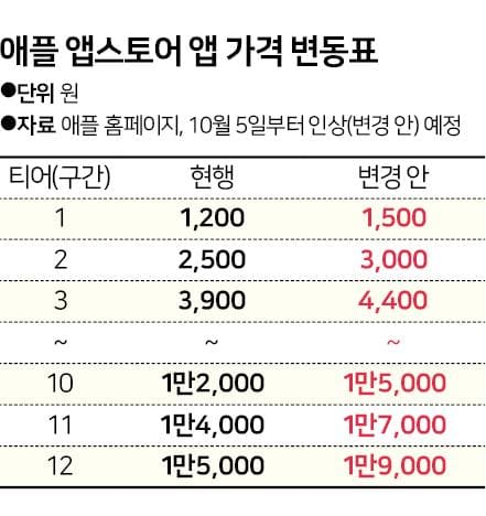 앱스토어 앱 결제 가격이 원스토어 등 다른 앱마켓 대비 비싼 상황에서 애플이 10월 5일부터 한국 시장 앱 결제 가격을 25%가량 '기습 인상'함에 따라 소비자 부담은 더욱 커질 전망이다.