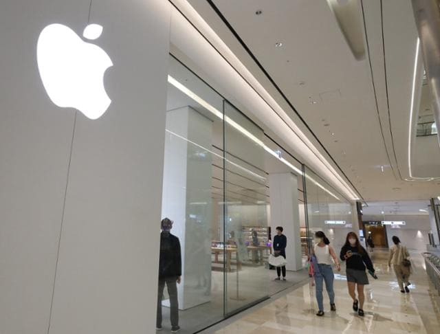 애플의 앱마켓 서비스 앱스토어가 한국 시장에서 앱 결제 가격을 25% 인상키로 한 가운데, 사용자 수 상위 100개 앱 서비스 중 약 30%는 앱스토어에서 가장 비싸게 판매되고 있다. 사진은 서울 송파구 애플스토어 잠실점. 뉴시스