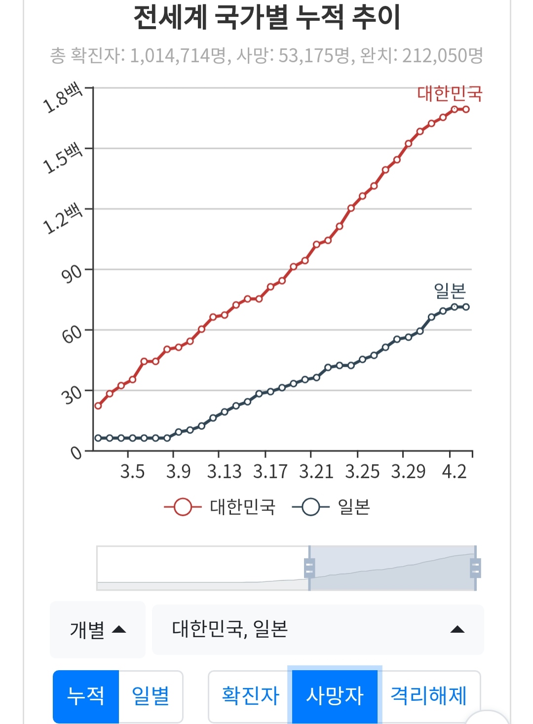 일본이 수상하다는 포스팅(https://dobioi.com/602)을 했었는데, 역시나 문제가 터지고 있다. 그런데 아직도 그래프상으로는 우려할만하지 않아 보인다.