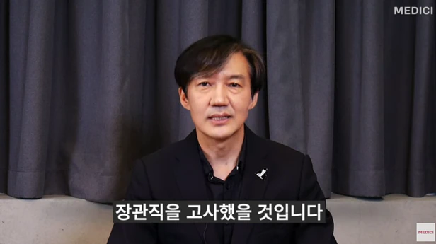 메디치미니어는 이 영상을 올리면서 “정경심 교수 형집행정지 전에 사전 촬영 및 제작됐다”는 설명을 붙였다. 조 전 장관 아내 정경심 전 동양대 교수는 지난 4일 형(刑) 집행 정지를 받아 1개월 기한으로 석방됐다. 조 전 장관은 형 집행 정지 결정 뒤 아내 치료와 정양에 전념하겠다며 소셜미디어 활동을 접겠다는 뜻을 밝혔다.