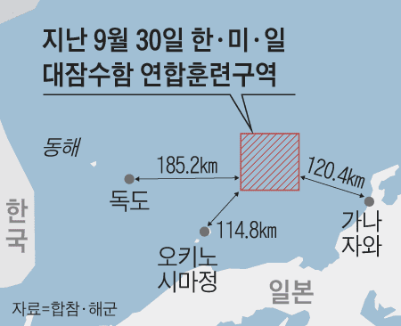 한미일 對잠수함 연합훈련구역, 독도보다 일본 쪽에 더 가까워