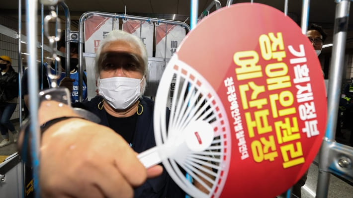 전장연은 '빈곤 철폐의 날'인 오는 17일에도 서울 광화문역에서 국회의사당역까지 39차 지하철 시위를 벌일 계획이다. 전장연은 장애인 이동권 보장과 장애인 권리 예산 확대를 요구하며 지난해 1월부터 시위를 이어오고 있다.