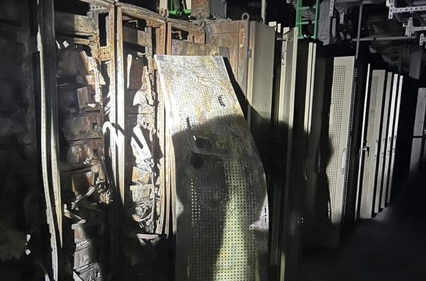 판교 SK C&C 데이터센터 화재 현장. 발화 지점인 지하 3층 전기실의 배터리가 불에 타 있다. [이기인 경기도의원 페이스북]/연합뉴스