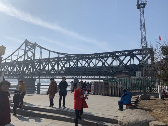중국 단둥과 북한 평안북도 신의주를 잇는 압록강 철교를 지나는 열차의 모습. 신경진 특파원