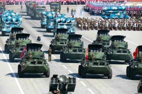 북한이 2018년에 진행한 열병식에서 공개한 '북한판 스파이크' 무장 장갑차의 모습. 노동신문