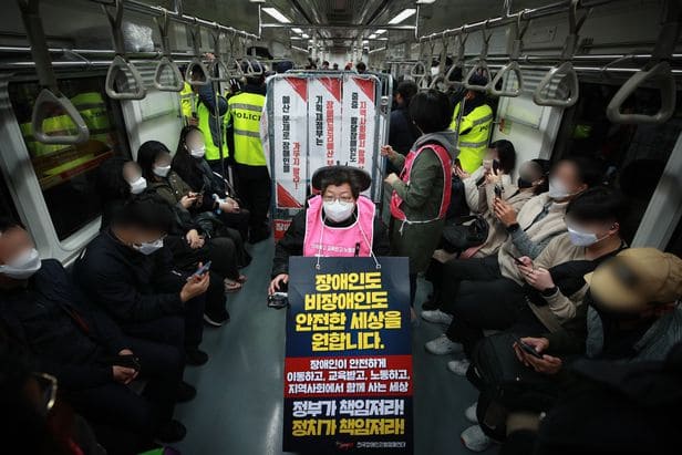 전장연은 지난 7일부터 매일 오전 출근길 지하철 탑승 시위를 진행하고 있다.
